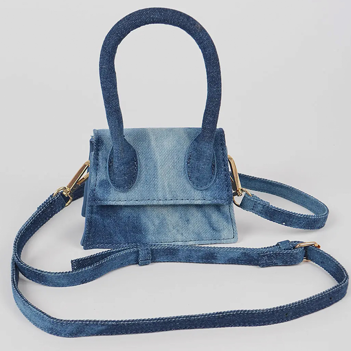 Take your style to the next level with our Denim Mini Bag. Made from durable denim, this mini bag features gold details for a touch of sophistication. Perfect for a day out with friends or a night out on the town. Upgrade your accessories with this trendy and versatile bag.