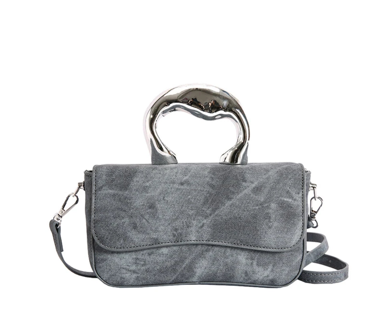 The soft textured metal silver handle adds a touch of sophistication to this playful, blue bag. Effortlessly combine fashion and function with this quirky accessory.