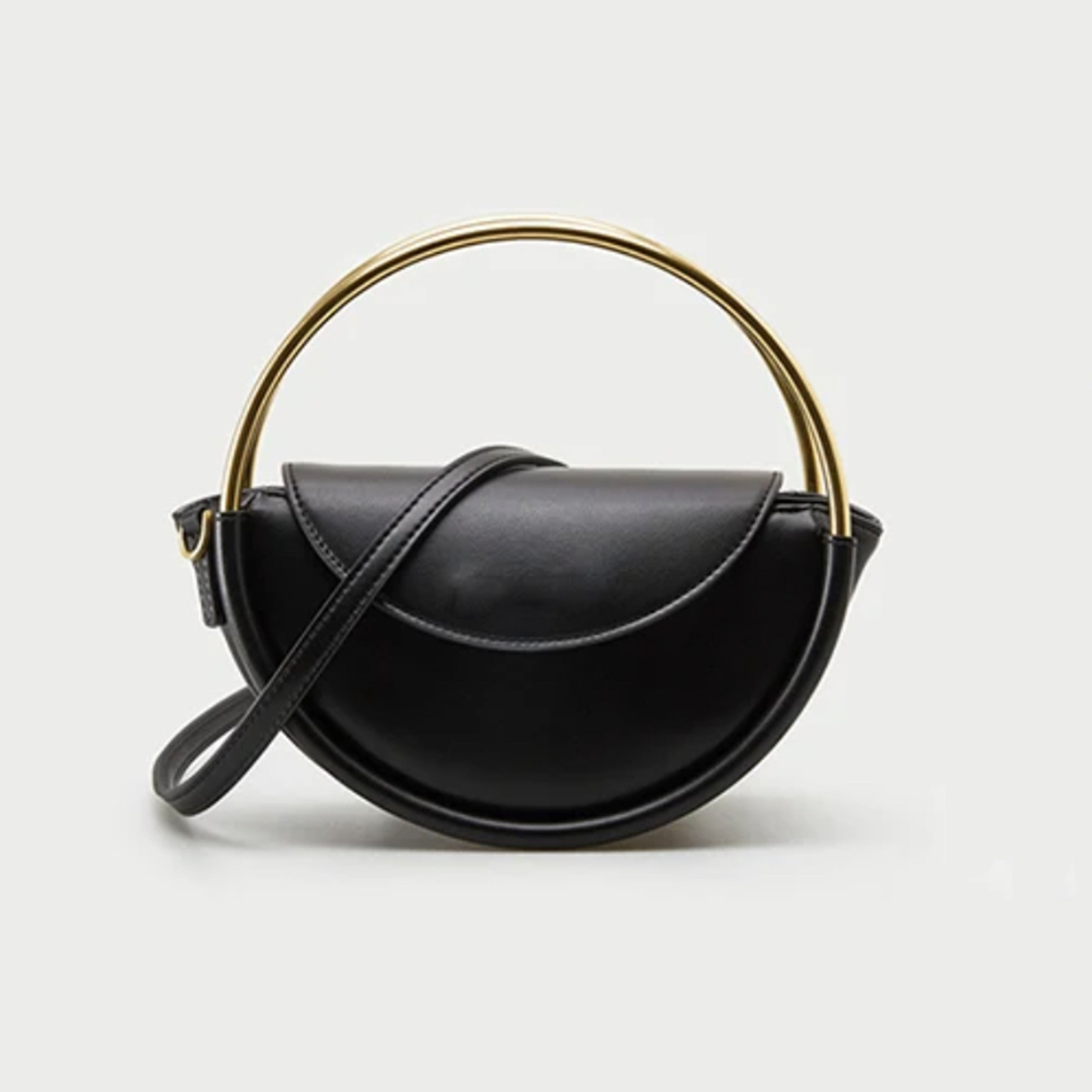 Add some flair to your outfit with our Semi-Circle Crossbody Purse, featuring a stunning blue gold accent handle. Carry your essentials in style and stand out from the crowd. It's a stylish statement piece that will elevate any look! (And yes, it's practical too!)